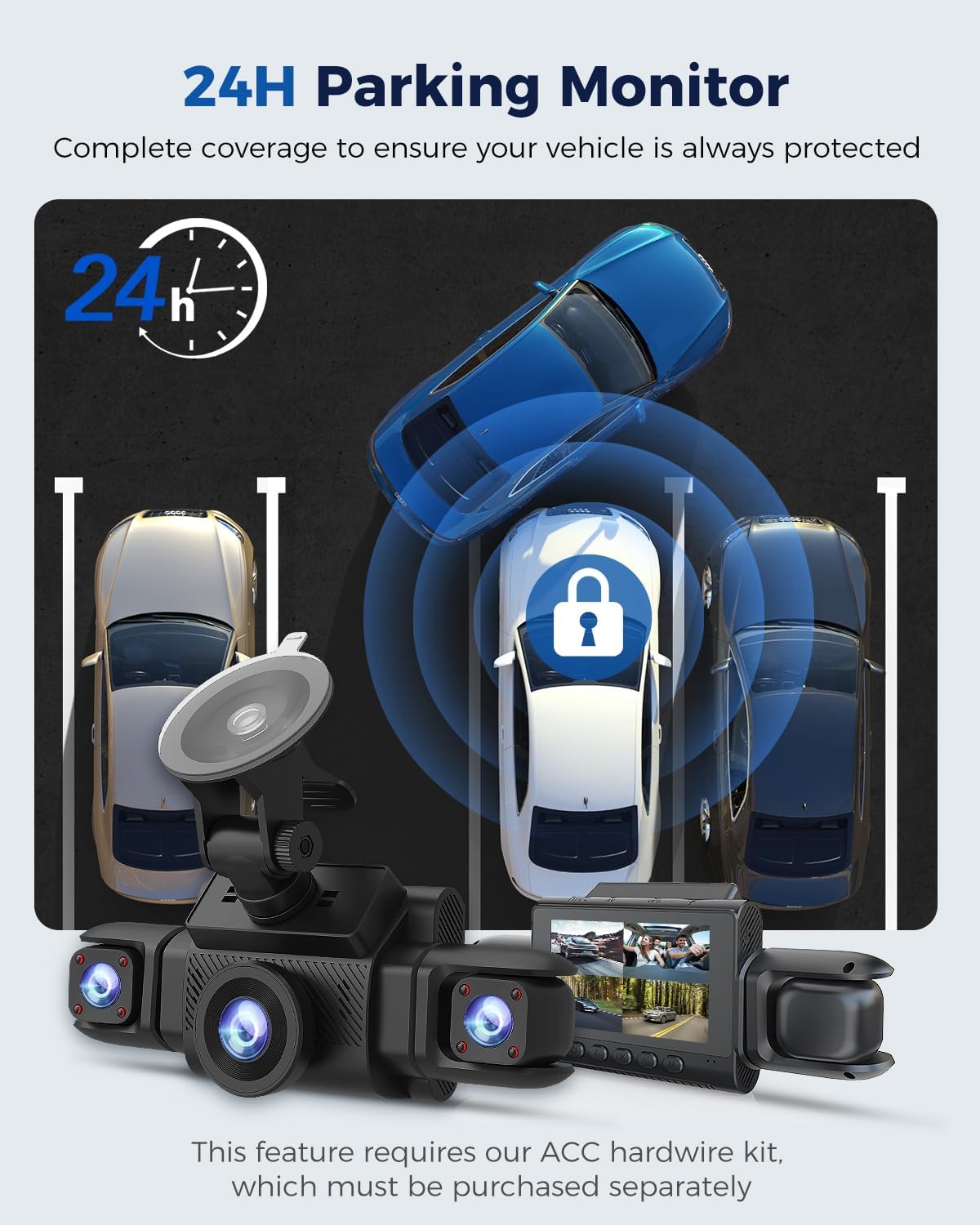 - Time-Lapse Recording & Parking Monitoring - This dash cam includes a time-lapse recording function that captures video at a rate of one frame per second. This means that 60 minutes of footage can be compressed into just one minute when in parking mode. This feature helps save space on your memory card and allows for quicker playback. Please note that using this function requires our ACC hardwire kit with a GPS module, which also features low-voltage protection to prevent battery drain.