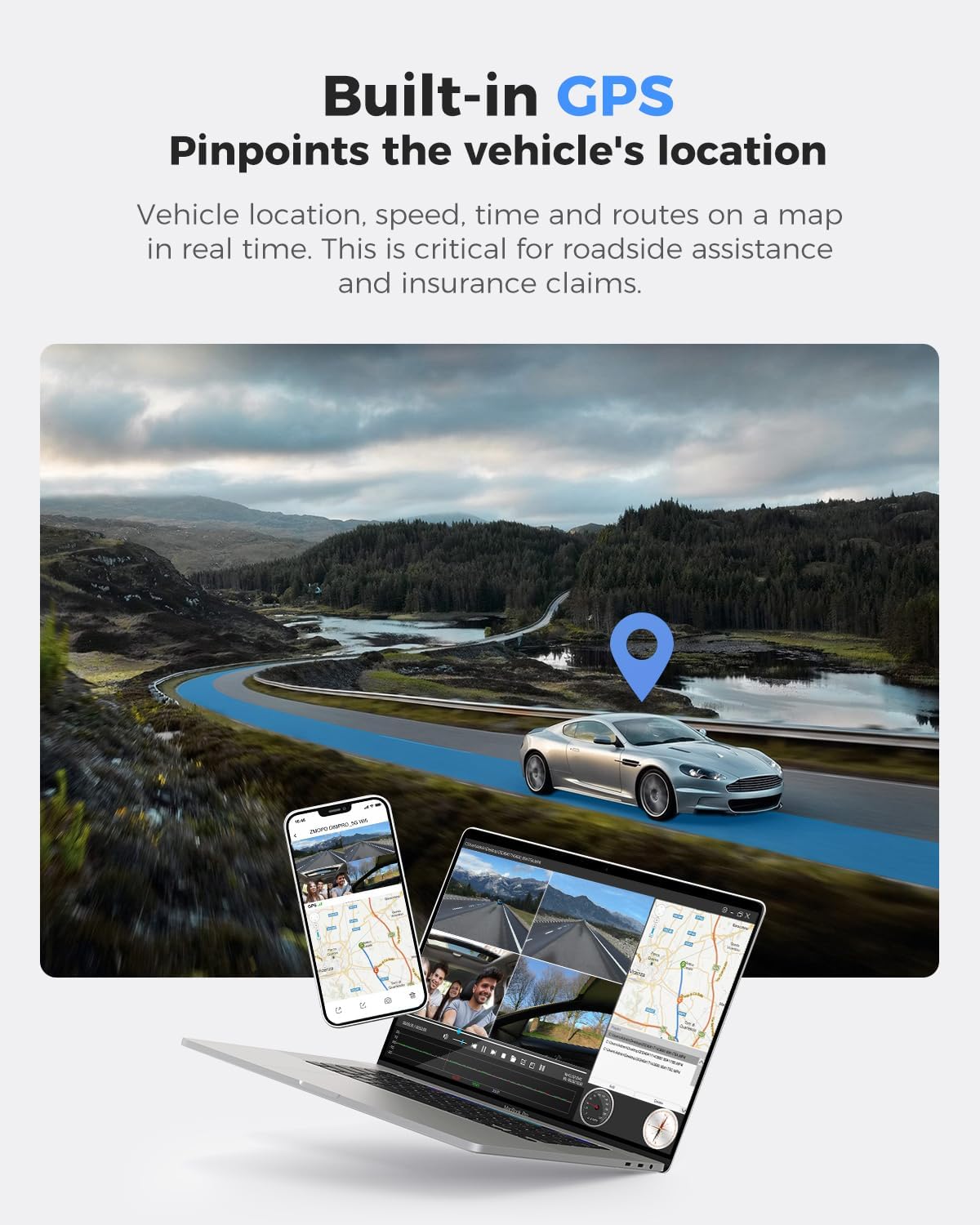 - DASH CAM WITH GPS - This dash cam features an integrated GPS that accurately tracks the vehicle's location, speed (in KMH/MPH), time, and routes on a real-time map. By using the GPS Video Player, users can visually trace their vehicle's path, ensuring that the exact location of any incidents is documented, which is essential for roadside assistance and insurance claims.